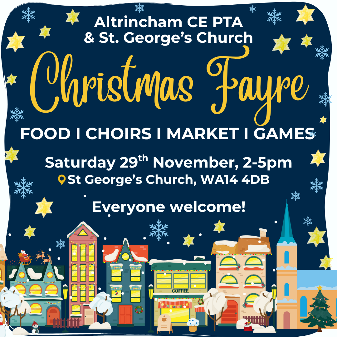 Partnering with Altrincham CE Primary School, our annual Christmas Fayre is going to be wonderful and we'd love you to be there!